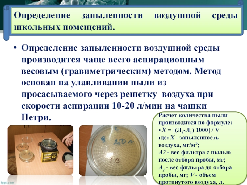 А1 - вес фильтра до отбора пробы, мг; V - объем протянутого воздуха, л.
