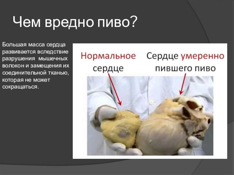 Слайд 12Что происходит с сердцем при употреблении пива?