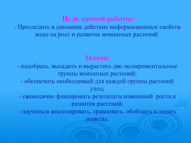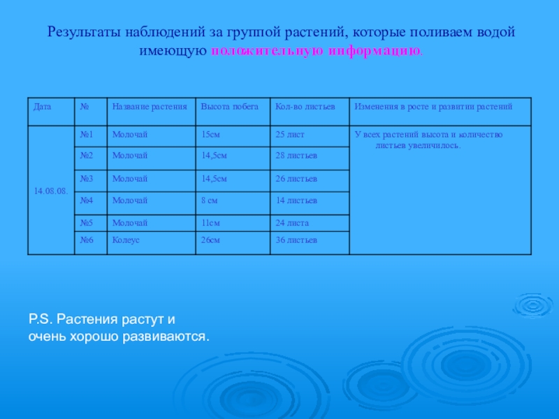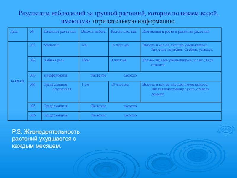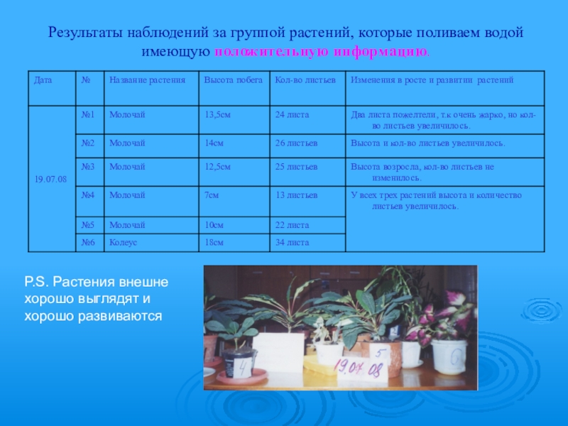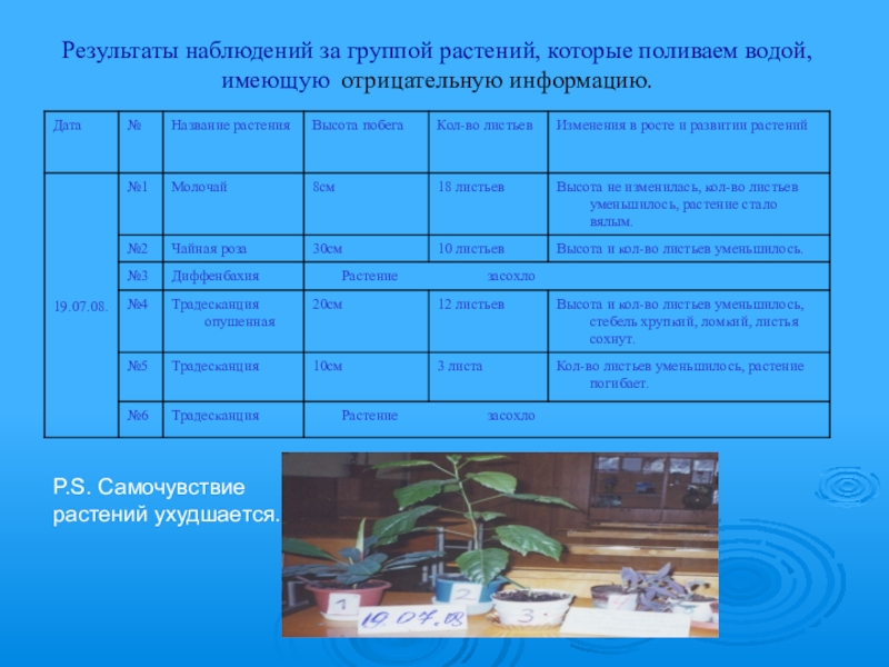 Влияние п о л о ж и т е л ь н о й и о т р и ц а т е л ь н о й информации воды на рост и развитие комнатных растений