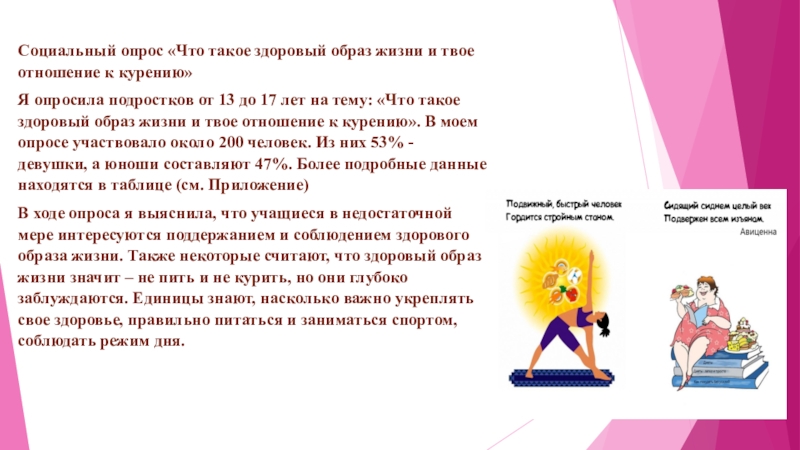 Слайд 17Социальный опрос «Что такое здоровый образ жизни и твое отношение к