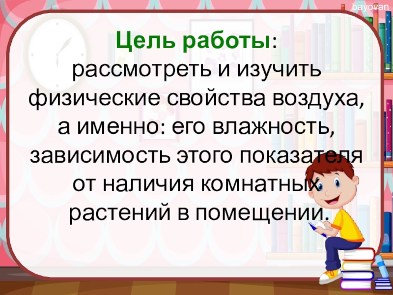 рассмотреть и изучить физические свойства воздуха, а именно: его влажность,