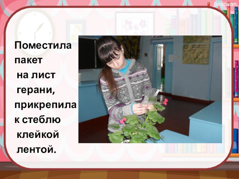 Слайд 11Поставила растение вблизи окна, выходящего на юг (время суток – с