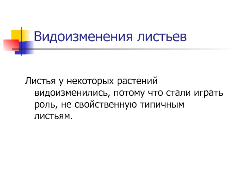 Видоизменения листьевЛистья у некоторых растений видоизменились, потому что стали играть роль, не свойственную типичным листьям.