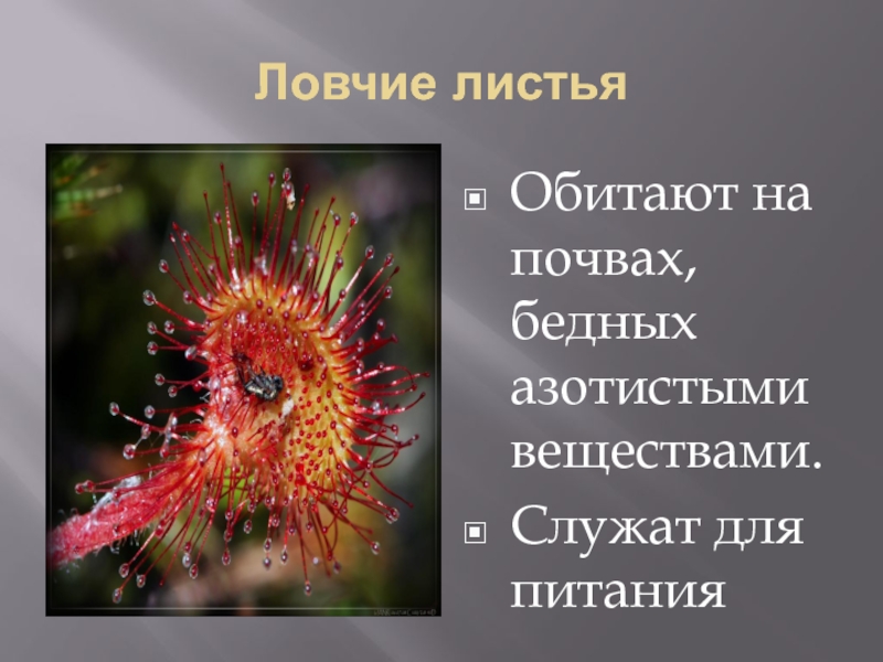 Ловчие листьяОбитают на почвах, бедных азотистыми веществами.Служат для питания