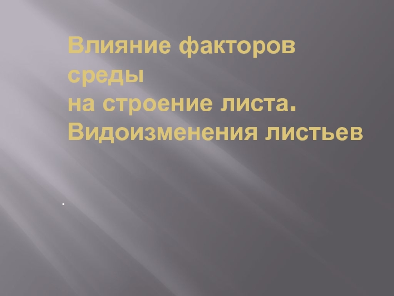 Слайд 1 Влияние факторов среды на строение листа. Видоизменения листьев