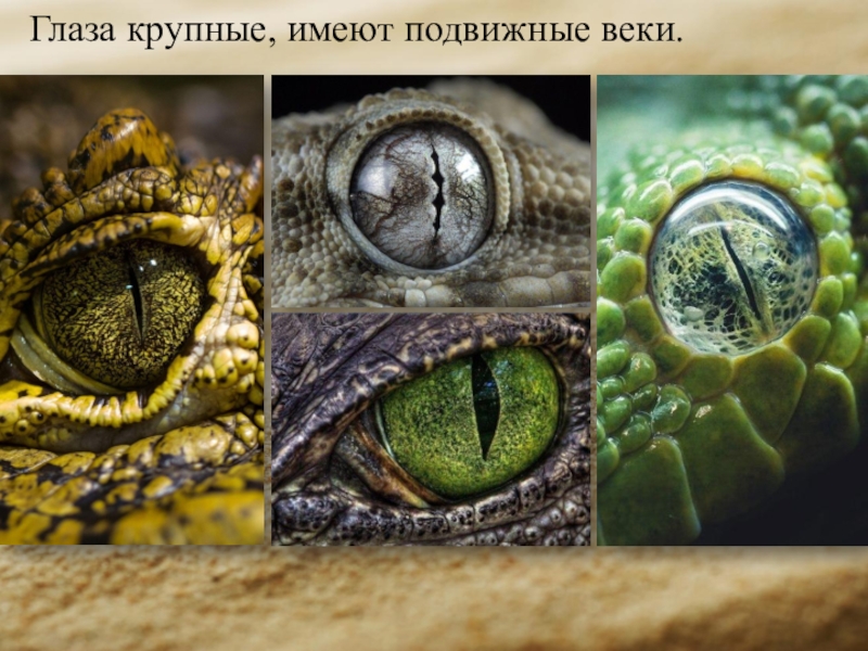 Слайд 6Глаза крупные, имеют подвижные веки.