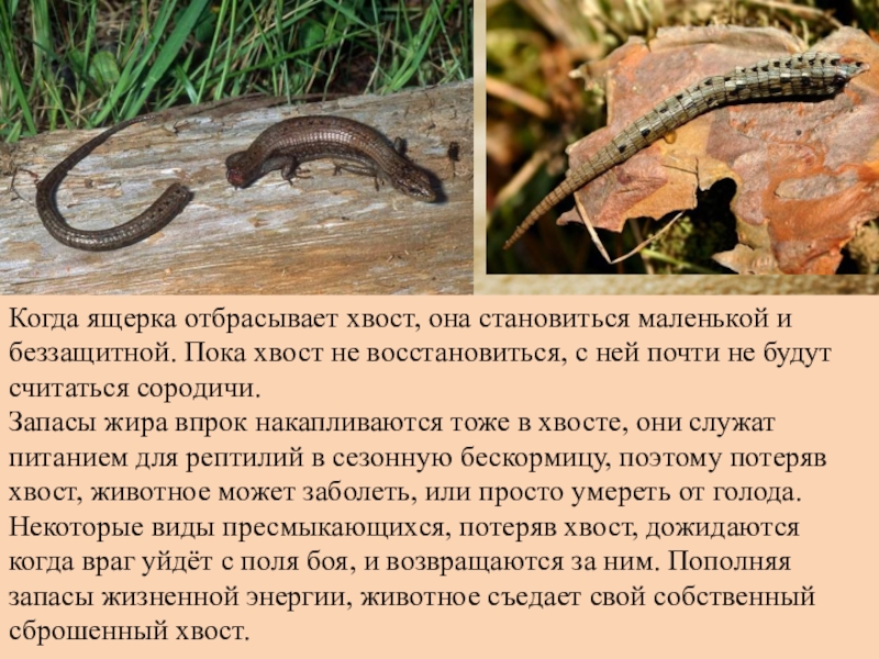 Слайд 8Когда ящерка отбрасывает хвост, она становиться маленькой и беззащитной. Пока хвост