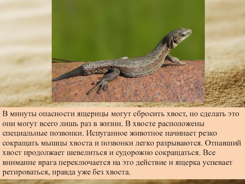 Слайд 9В минуты опасности ящерицы могут сбросить хвост, но сделать это они