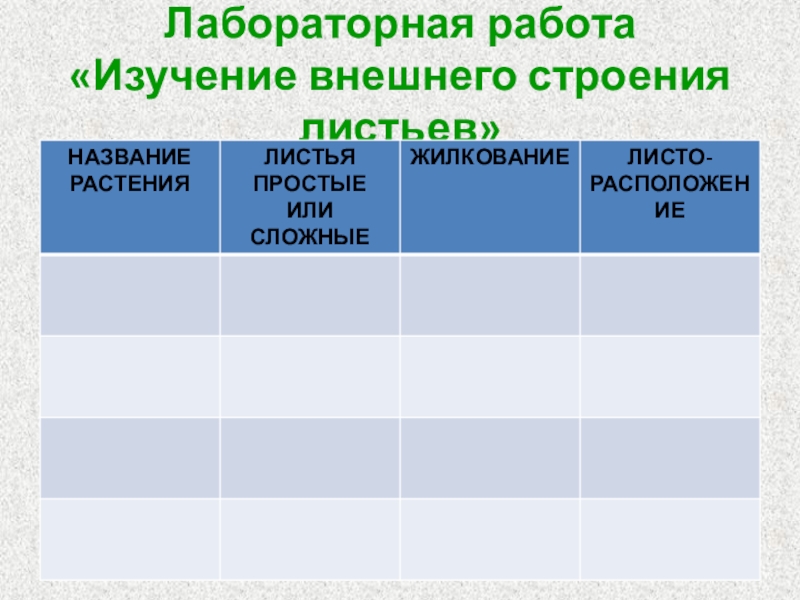 Слайд 13Лабораторная работа «Изучение внешнего строения листьев»