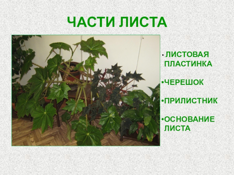 Слайд 7ЧАСТИ ЛИСТА
