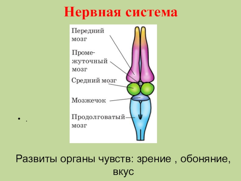 Нервная система.Развиты органы чувств: зрение , обоняние, вкус