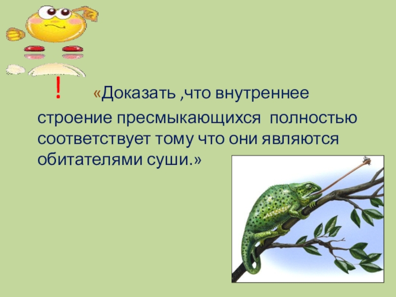 !  «Доказать ,что внутреннее строение пресмыкающихся полностью соответствует тому что они являются обитателями суши.»