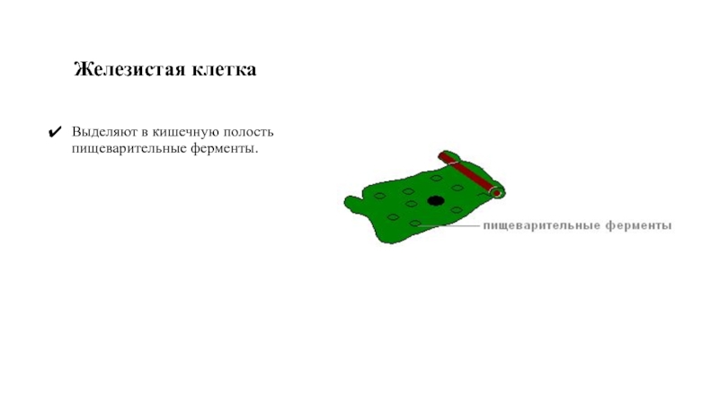 Железистая клеткаВыделяют в кишечную полость пищеварительные ферменты.