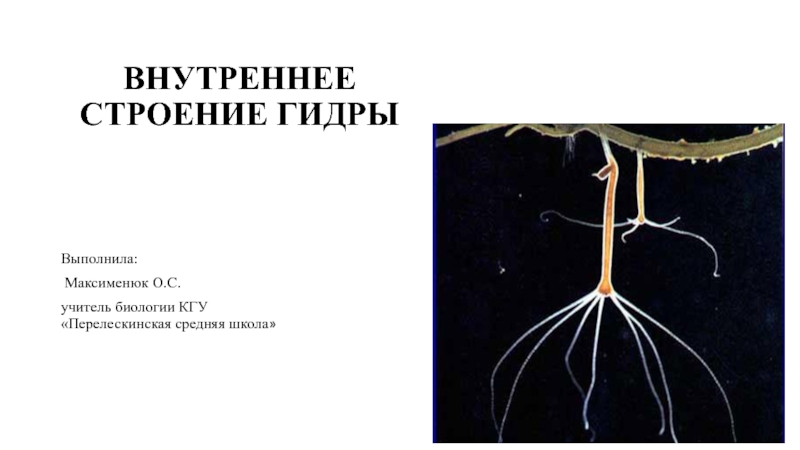 ВНУТРЕННЕЕ СТРОЕНИЕ ГИДРЫВыполнила: Максименюк О.С. учитель биологии КГУ«Перелескинская средняя школа»