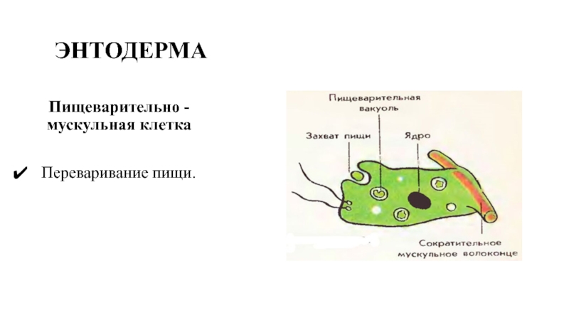 ЭНТОДЕРМАПищеварительно - мускульная клеткаПереваривание пищи.