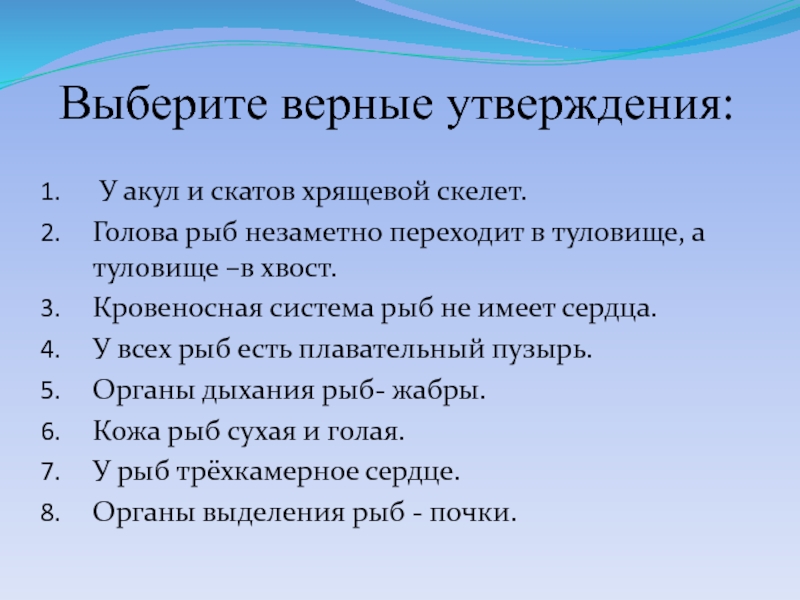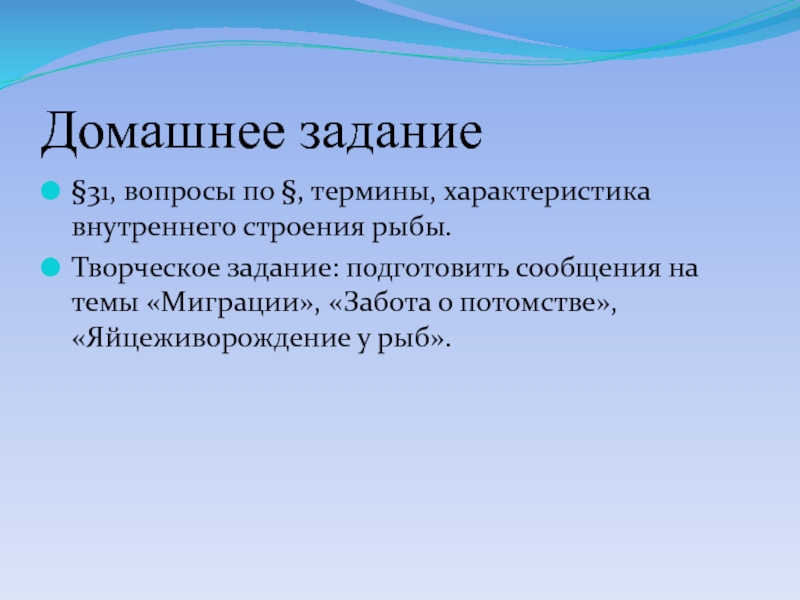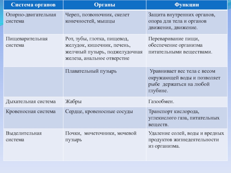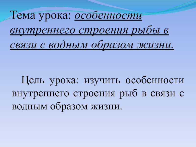 Цель урока: изучить особенности внутреннего строения рыб в связи с водным образом жизни.