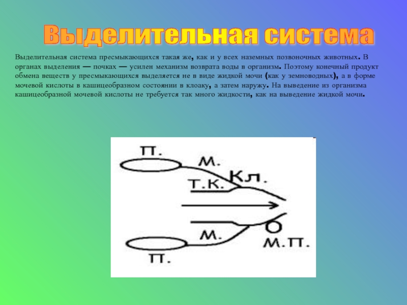 Слайд 10Выделительная система пресмыкающихся такая же, как и у всех наземных позвоночных
