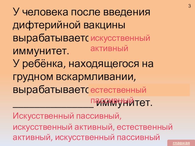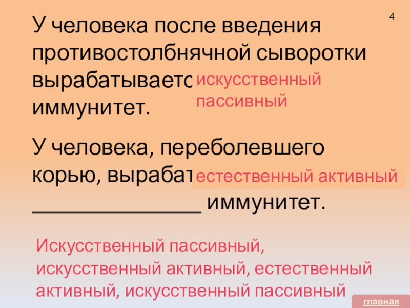 Искусственный пассивный, искусственный активный, естественный активный, искусственный пассивный