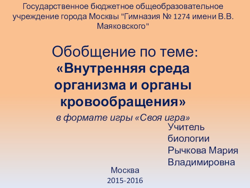 Государственное бюджетное общеобразовательное учреждение города Москвы "Гимназия № 1274 имени В.В. Маяковского"