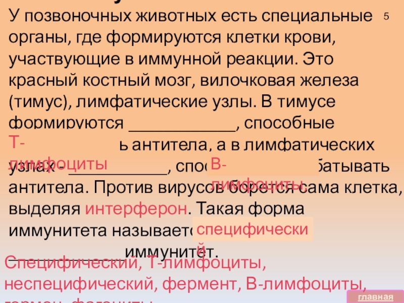 Специфический, Т-лимфоциты, неспецифический, фермент, В-лимфоциты, гормон, фагоциты