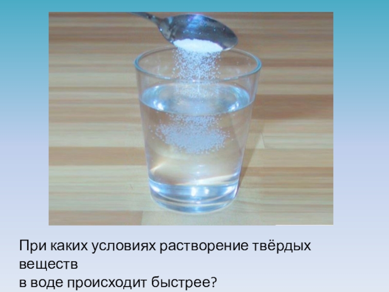 При каких условиях растворение твёрдых веществ в воде происходит быстрее?