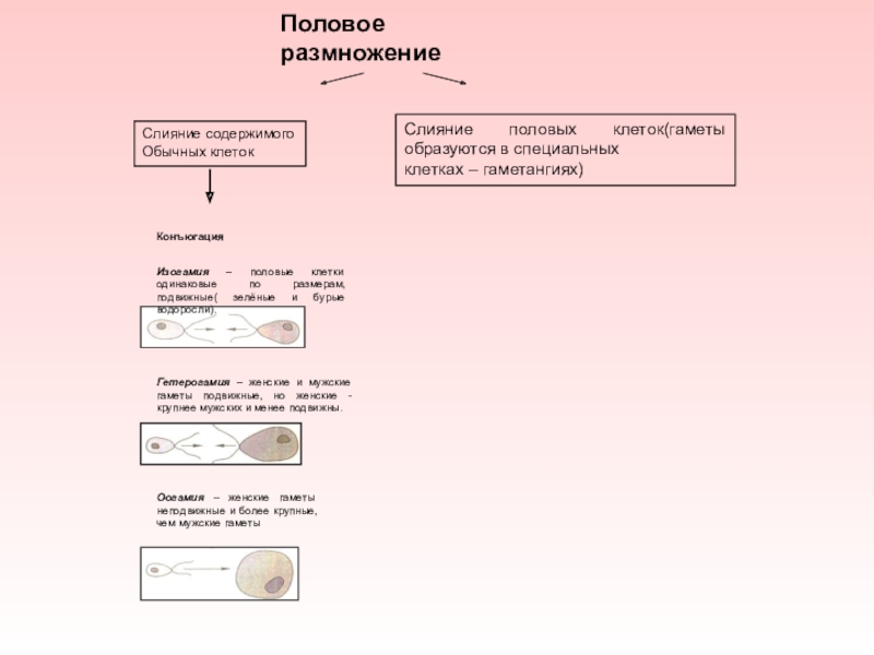 Гетерогамия – женские и мужские гаметы подвижные, но женские - крупнее мужских и менее подвижны.