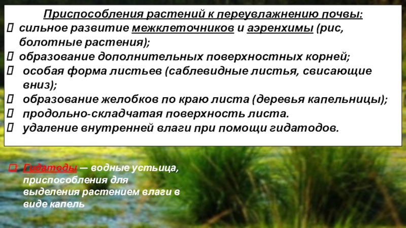 Гидатоды — водные устьица, приспособления для выделения растением влаги в виде капель