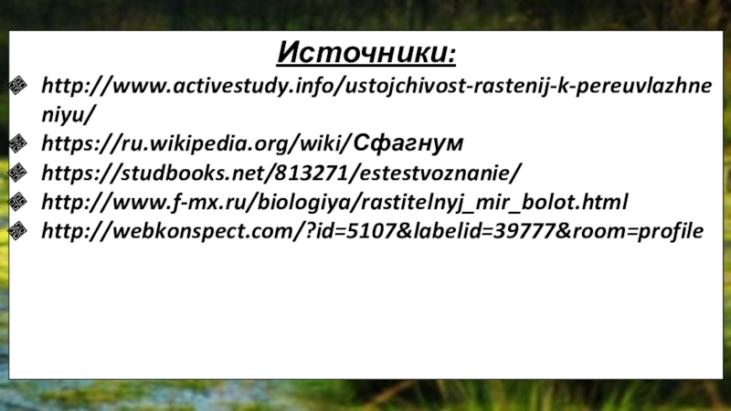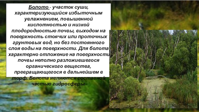 К особенностям болот можно отнести: