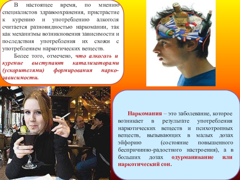 Наркотическая зависимость – это непреодолимая потребность человека в приёме наркотика.
