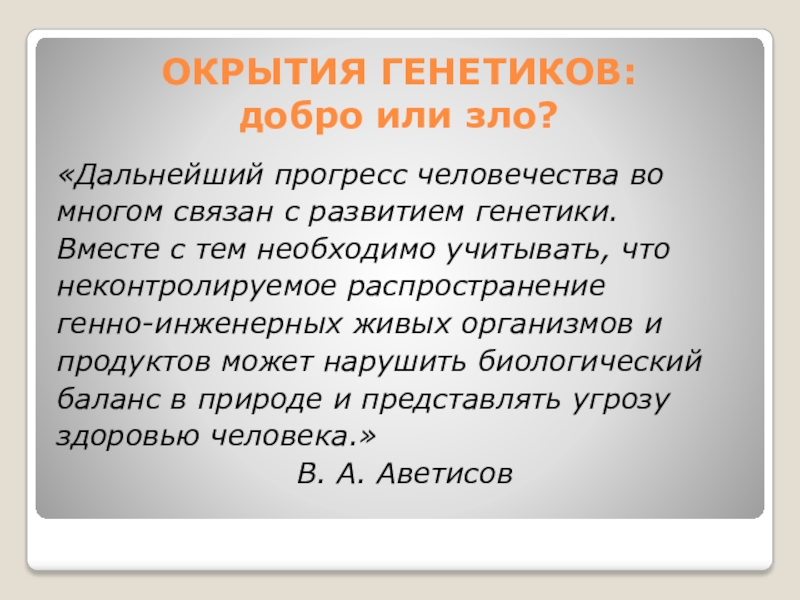 Слайд 22«Ген – это просто короткое и удобное слово, которое легко сочетается