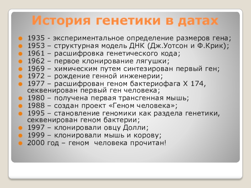 1977 – расшифрован геном бактериофага Х 174, секвенирован первый ген человека;