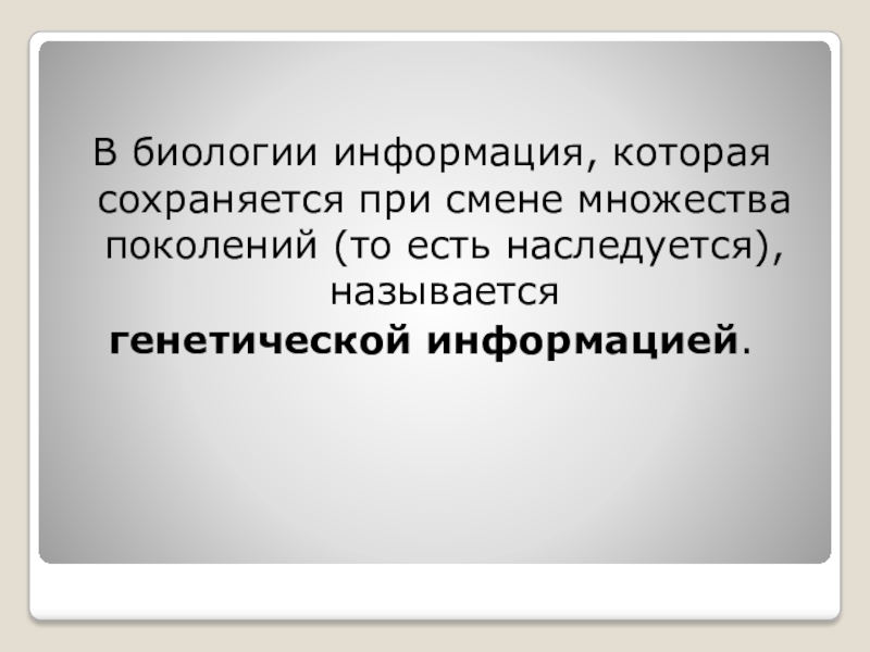 Слайд 8В биологии информация, которая сохраняется при смене множества поколений (то есть