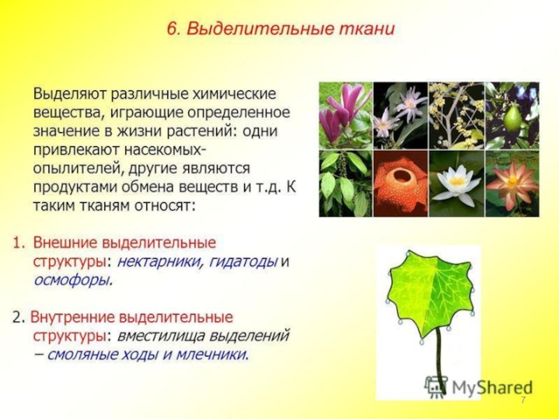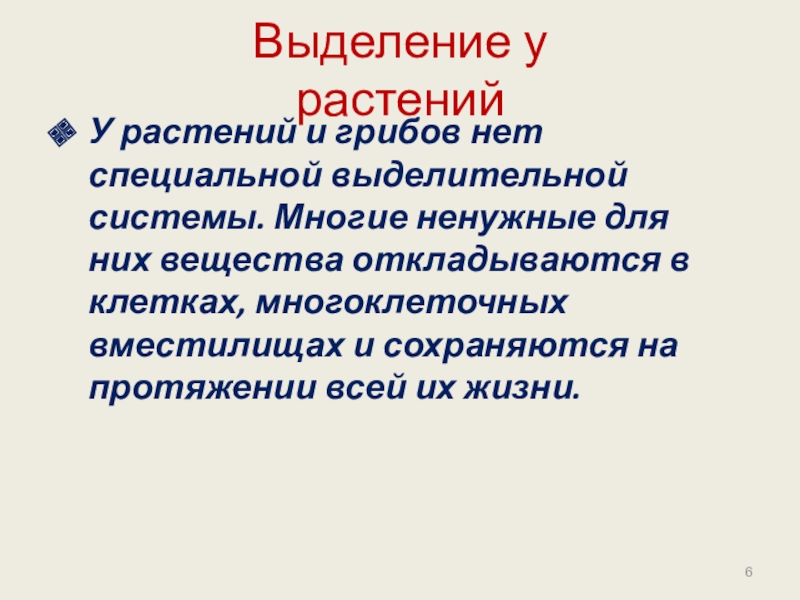 Слайд 6Выделение у растений