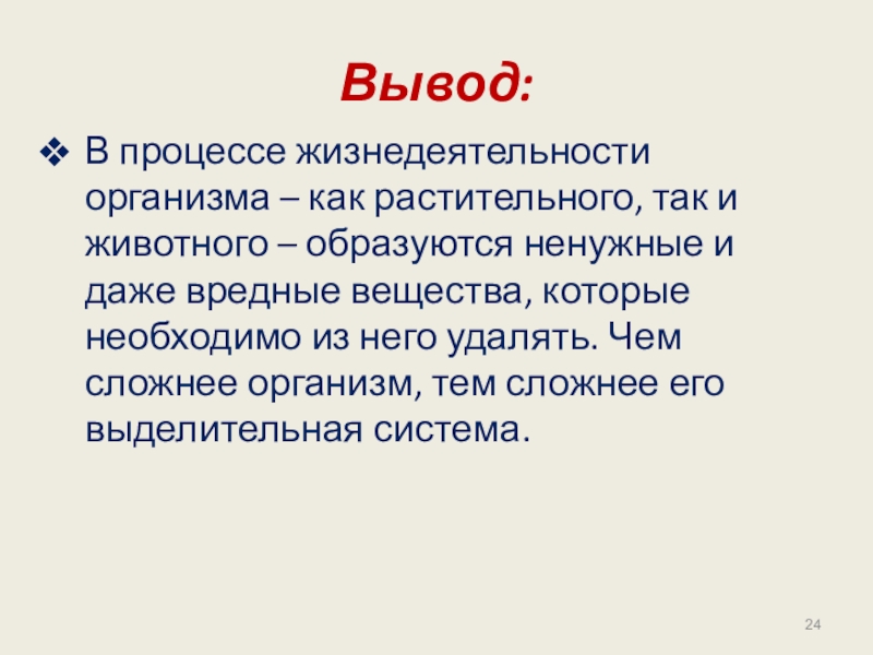образуются ненужные и даже вредные вещества, которые необходимо из него удалять. Чем сложнее организм, тем сложнее его выделительная система.