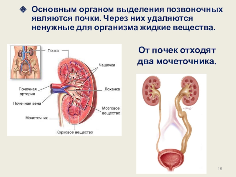 Основным органом выделения позвоночных являются почки. Через