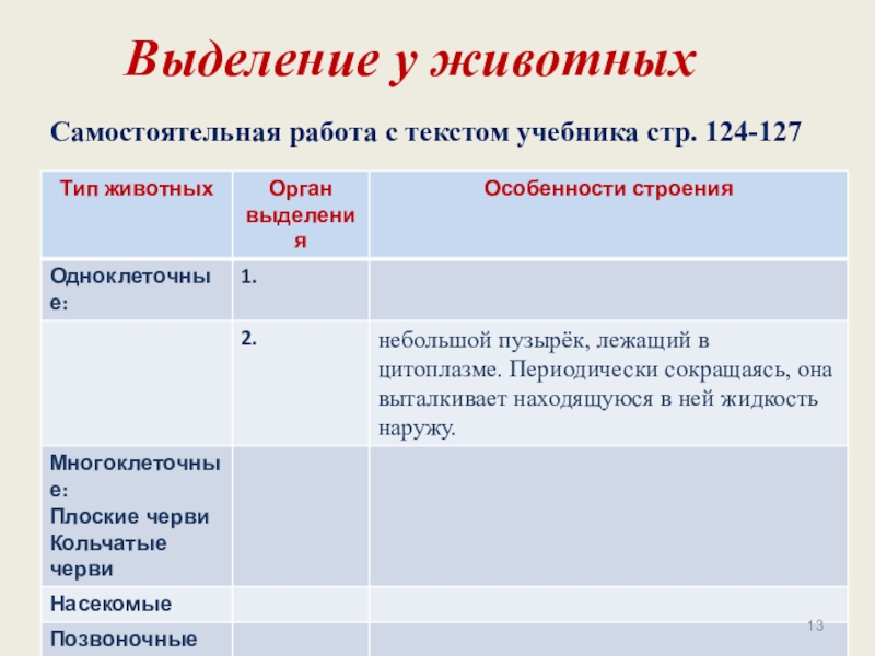 Слайд 13Выделение у животных