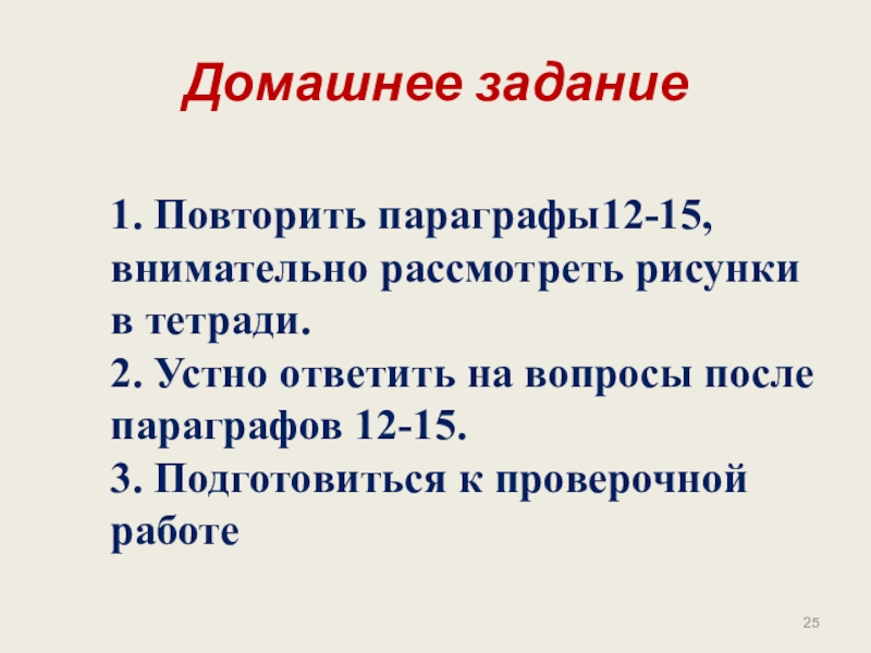 1. Повторить параграфы12-15, внимательно рассмотреть рисунки в тетради.