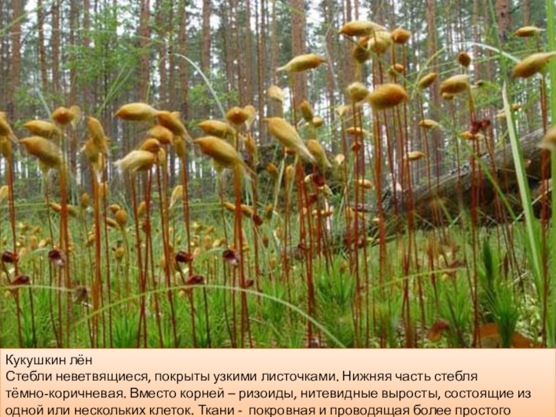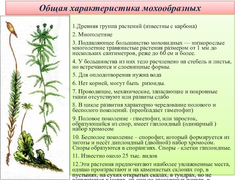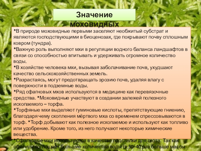 (зелёный мох кукушкин лён, торфяной мох сфагнум)
