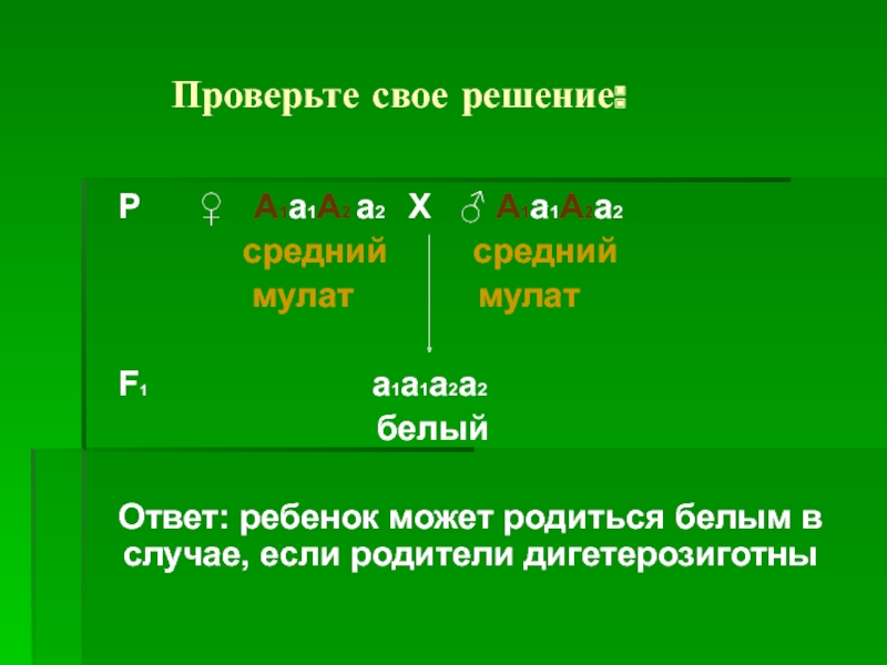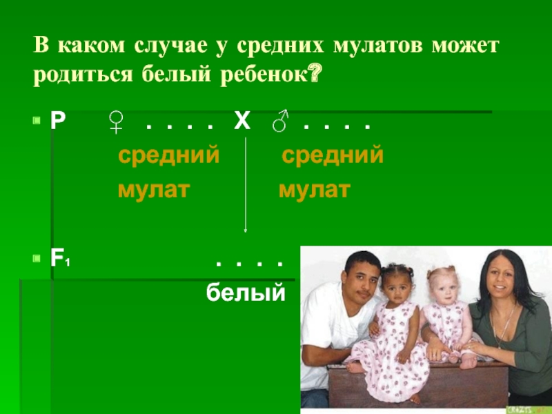 Слайд 24В каком случае у средних мулатов может родиться белый ребенок?