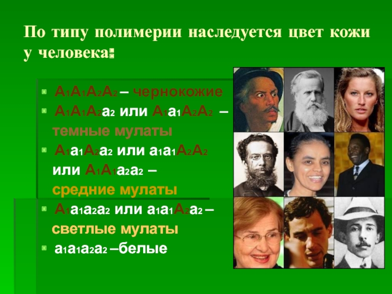 Слайд 23По типу полимерии наследуется цвет кожи у человека: