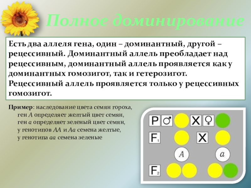 Пример: наследование цвета семян гороха,