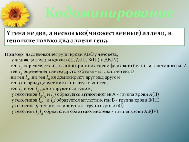 Пример: наследование групп крови АВО у человека,
