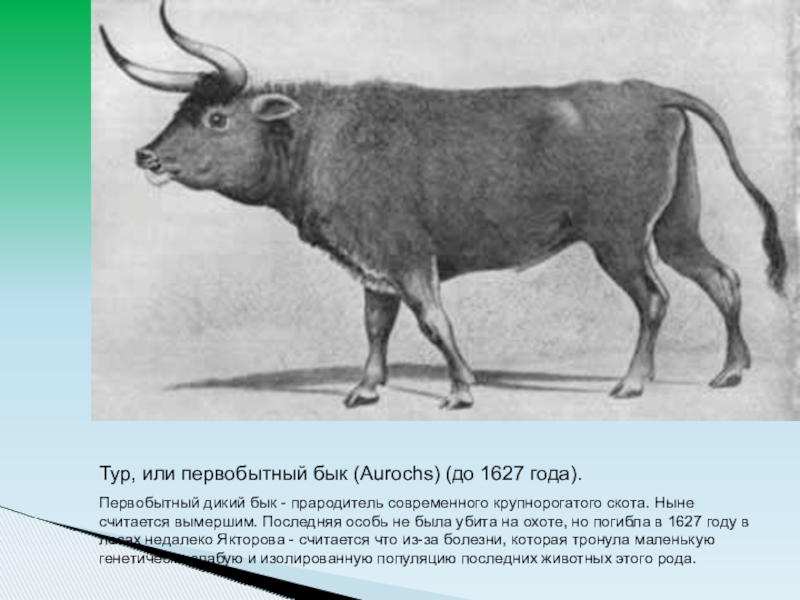 Слайд 11Тур, или первобытный бык (Aurochs) (до 1627 года).