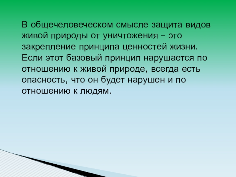 Слайд 18В общечеловеческом смысле защита видов живой природы от уничтожения – это