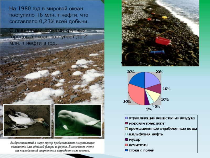 Слайд 24На 1980 год в мировой океан поступило 16 млн. т нефти,