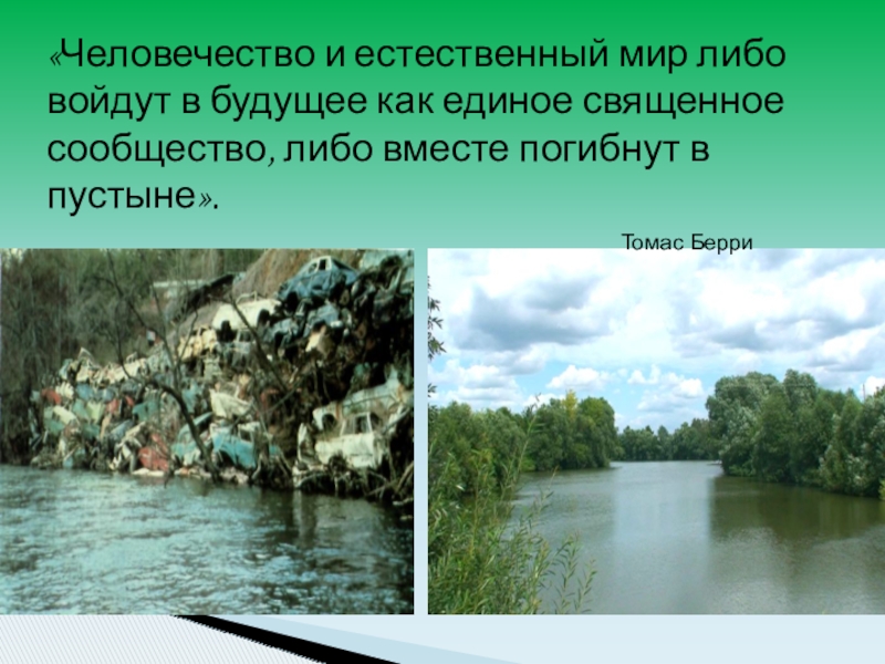 Слайд 36«Человечество и естественный мир либо войдут в будущее как единое священное