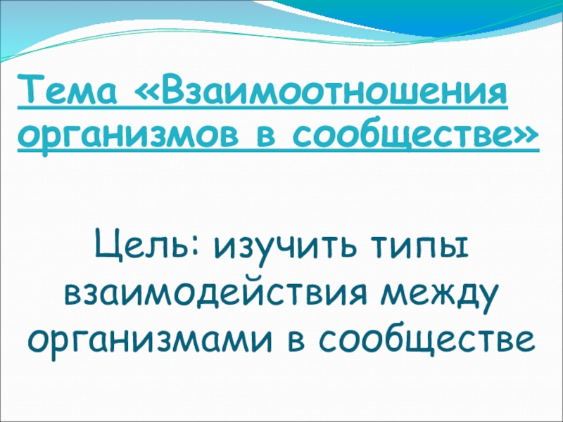 Цель: изучить типы взаимодействия между организмами в сообществеТема «Взаимоотношения организмов в сообществе»
