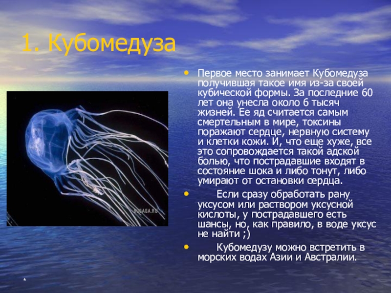 Первое место занимает Кубомедуза получившая такое имя из-за своей кубической