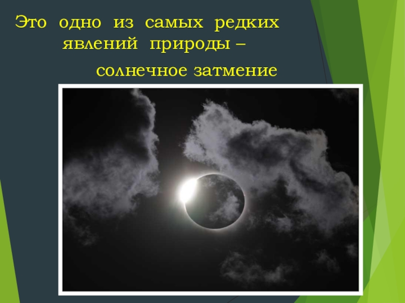 Это одно из самых редких явлений природы –        солнечное затмение