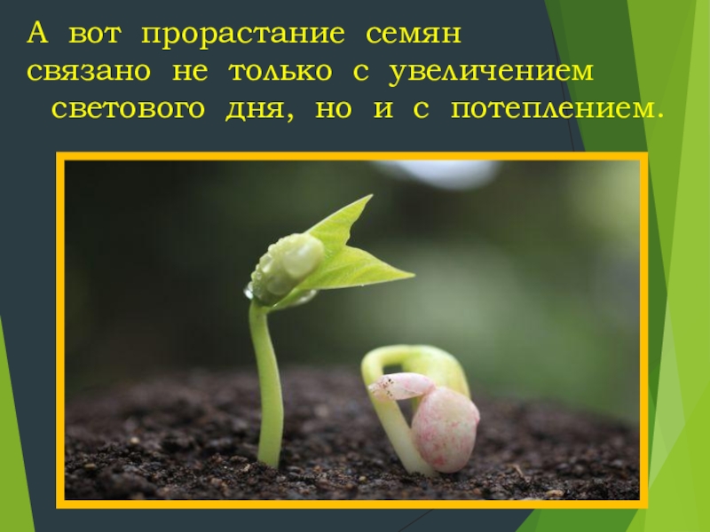 А вот прорастание семян связано не только с увеличением светового дня, но и с потеплением.